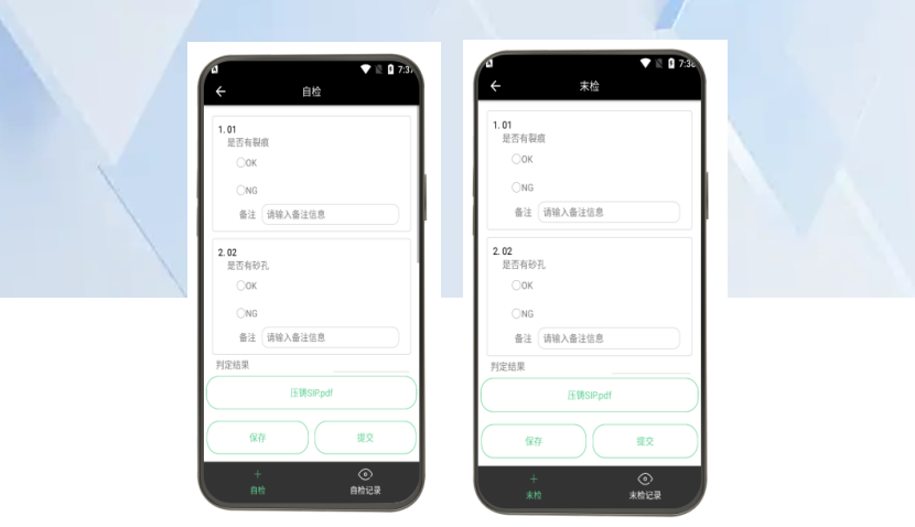 品质人员通过移动终端实时巡检机台生产任务,动态监控巡检结果,并在任务完工时同步完成未检确认。