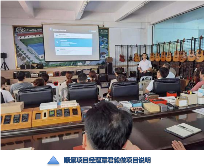 2021年8月11日举行惠阳倍铃乐器配件有限公司顺景ERP系统启动大会,倍铃董事长鲁董、项目经理储耀庭、各部门主管和业务骨干参与了本次启动大会,顺景公司副总李江谋、项目经理覃君毅、助理顾问黄杰进行了实施规划、实施方法及注意事项等进行了汇报。