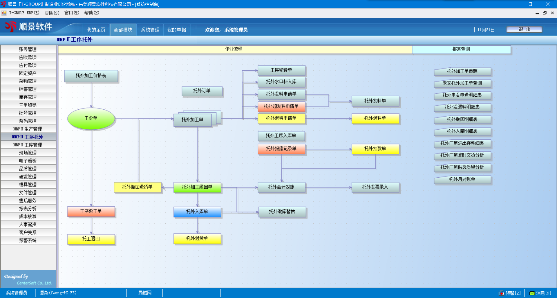 2.    外发材料管理,对于委外加工材料的发出、收回、结存有详细报表反映;